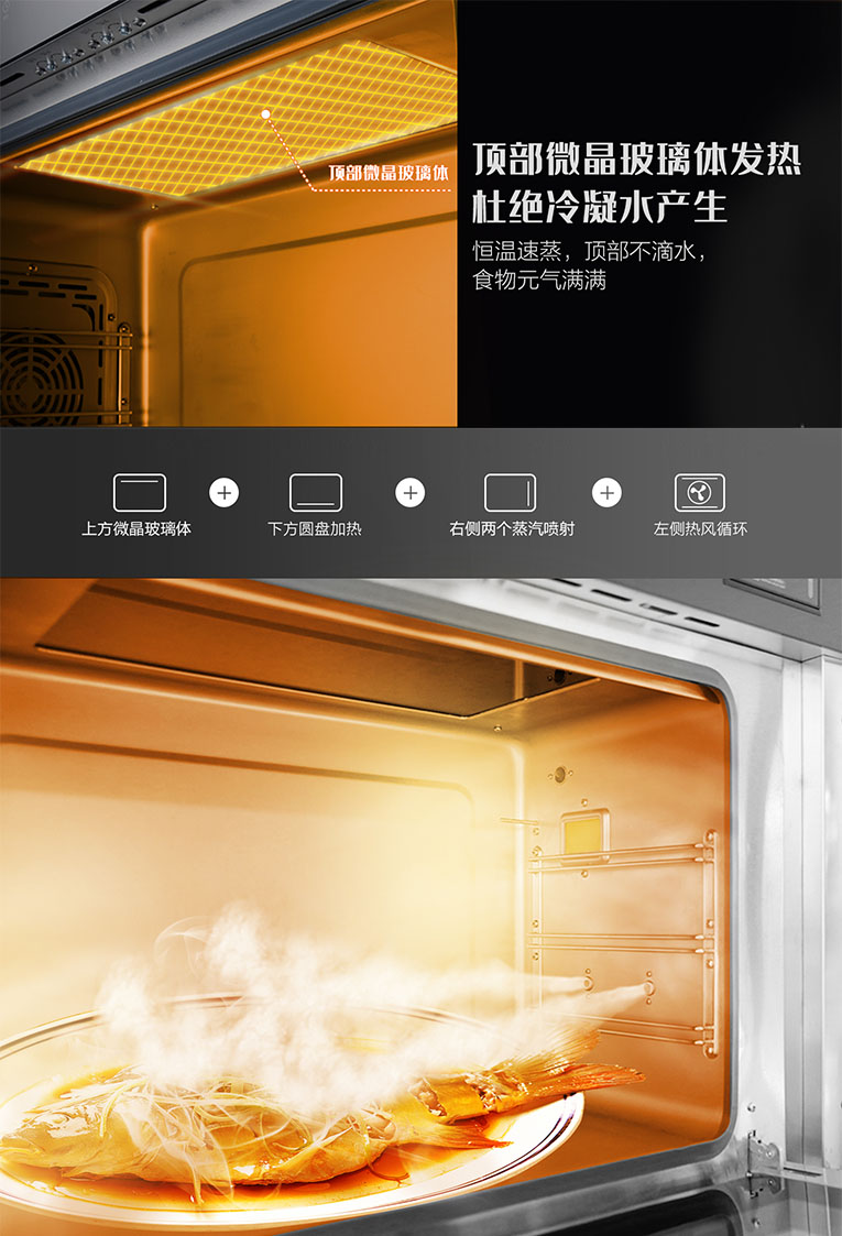 “蒸”作為中國傳統(tǒng)且廣泛使用的烹飪手段,是公認的健康飲食之道,科恩集成烹飪中心S350蒸消款集成灶,頂部微晶加熱+ 底部陶瓷加熱盤,雙孔大蒸汽100%極速穿透,充分保留食物原汁原味,蒸出美味蒸出鮮。