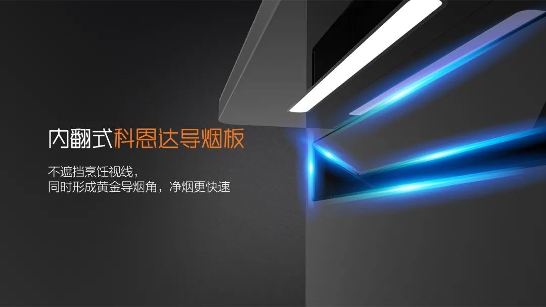 內傾科恩達導煙網(wǎng)板,智能開合,獨有黃金吸煙角,不擋視線,吸煙更給力,烹飪更寬敞。