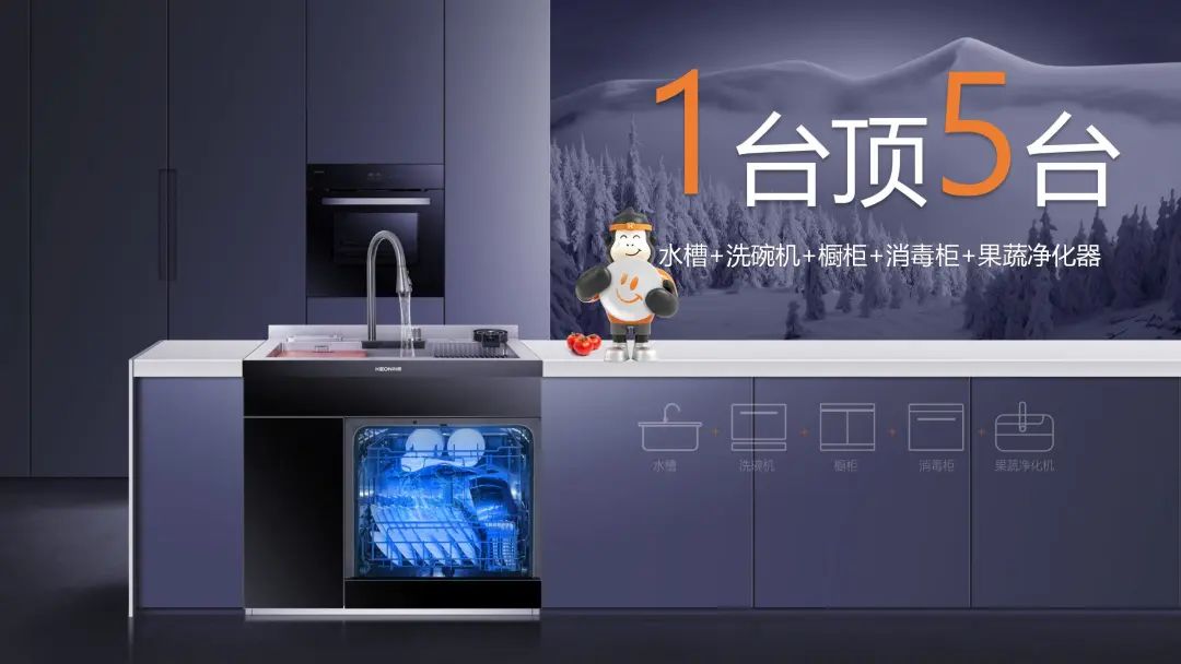 X6L將水槽、洗碗機、果蔬凈化器、消毒柜、櫥柜融為一體,足矣解決廚房所有清洗難題。
