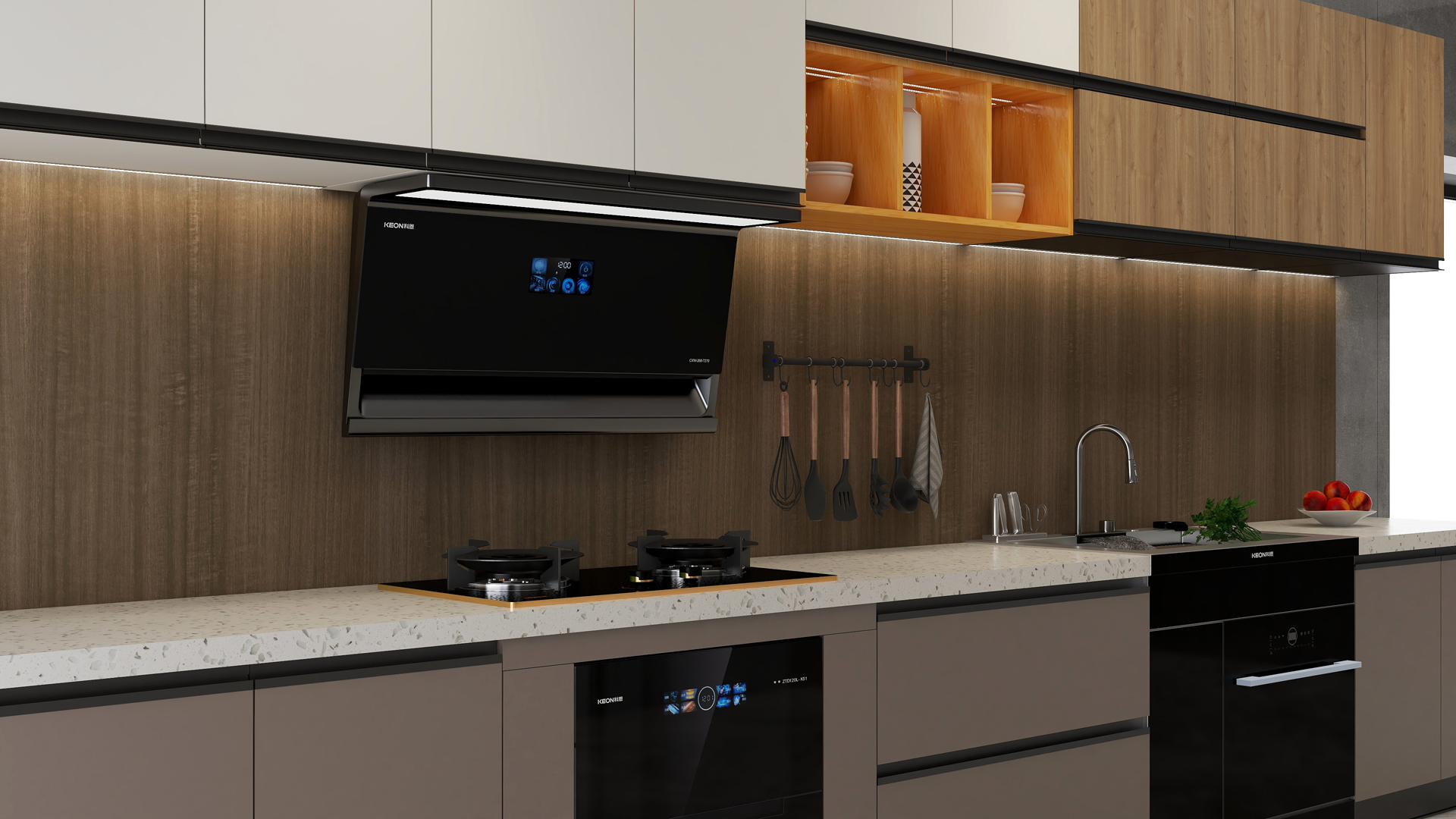 性能方面,科恩 7270 煙機堪稱 “凈煙利器”。頂側(cè)雙吸設(shè)計能精準直卷雙灶濃煙,實現(xiàn) 1+1>2 的強力凈煙效果;25m³/min 的大吸力搭配 895×468mm 超寬屏攏煙,即使是中式爆炒也能輕松應對,讓廚房空氣時刻清新。三檔風量隨心調(diào)節(jié),無論是小火慢燉還是大火爆炒,都能一鍵匹配最佳吸力,瞬間煥新廚房空氣。智能操控,便捷下廚。智能幻彩屏搭配模塊化按鍵,功能區(qū)顯示直觀清晰,操作簡單易懂,廚房新手也能輕松上手。揮手智控科技,零觸碰即可操控開關(guān)機與調(diào)節(jié)風量,油污不沾面板。時間顯示功能,精準監(jiān)控烹飪時間,助你更好管理烹飪流程,下廚有條不紊,告別手忙腳亂。