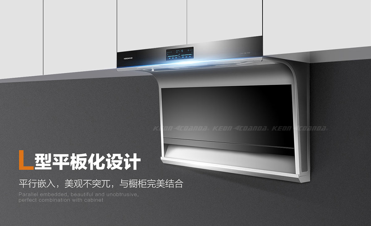 - 特創(chuàng)L型平板化隱形設(shè)計(jì),平行嵌入,與櫥柜結(jié)合,美觀不突兀。