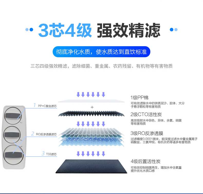 過濾方式:反滲透濾芯方式:PP+C(含阻垢)