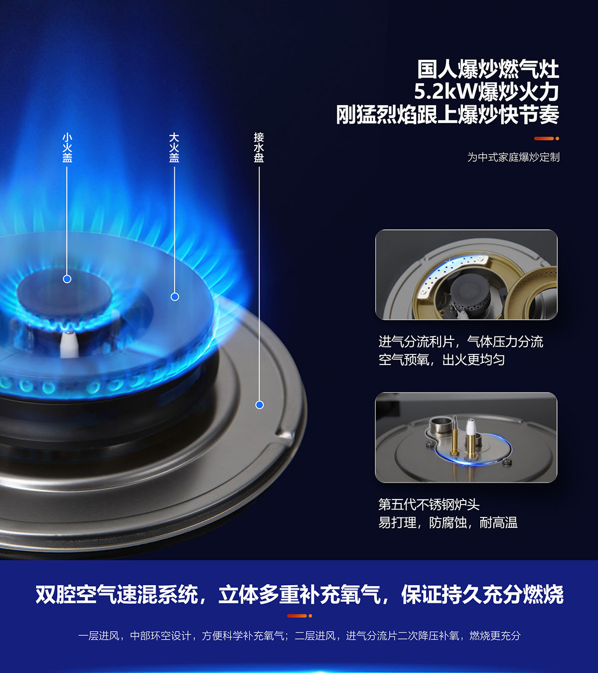 - 5.2kw爆炒大火力,高效環(huán)噴炒出大廚味道