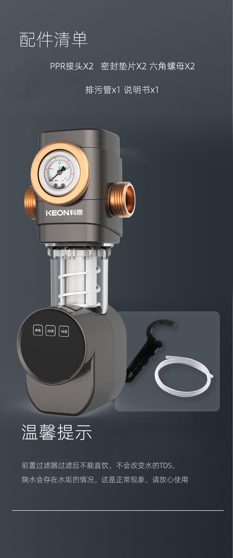 - 配精密水壓表,實時檢測進水水壓