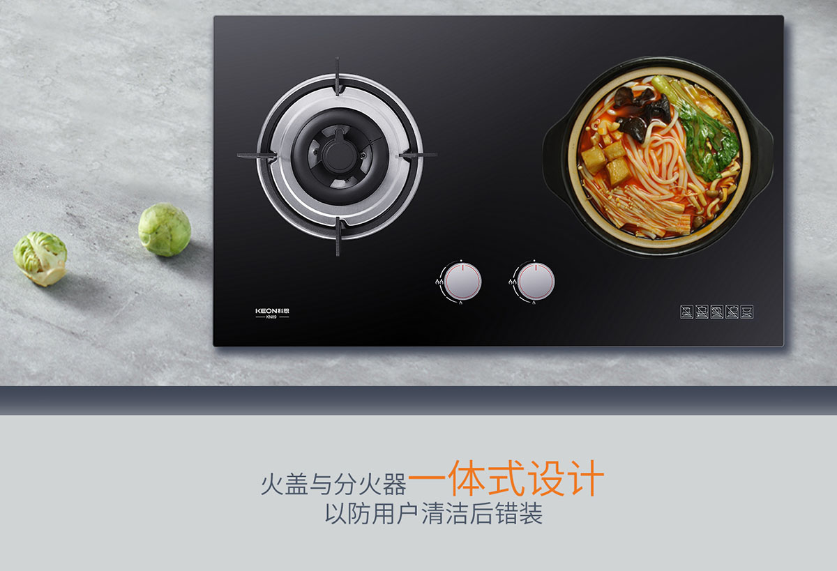 - 火蓋與分火器一體式設計,以防用戶清潔后錯裝