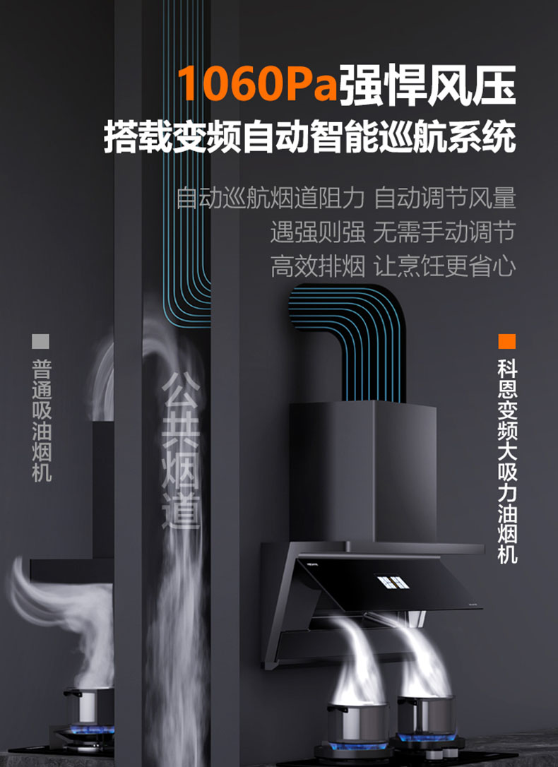 - 1060Pa強(qiáng)風(fēng)壓,高峰期烹飪排煙暢行無(wú)阻